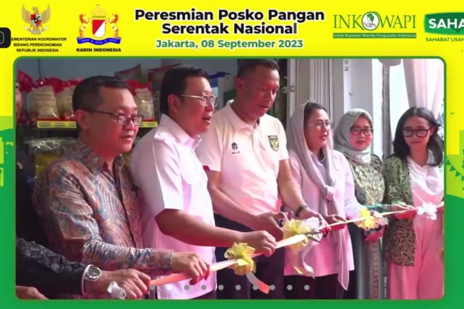 Untuk kedua kalinya, Kamar Dagang dan Industri (Kadin) Indonesia bersama Induk Koperasi Wanita Pengusaha Indonesia (INKOWAPI) dan Sahabat Usaha Rakyat (Sahara) meresmikan Posko Pangan Serentak Nasional pada Jumat, 8 September 2023.